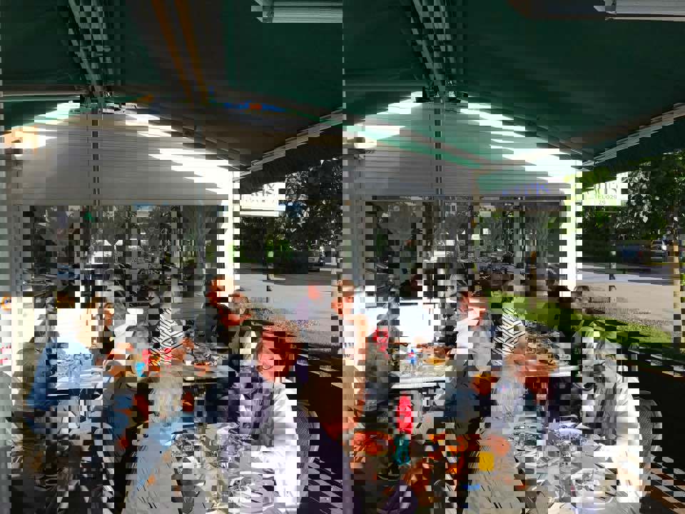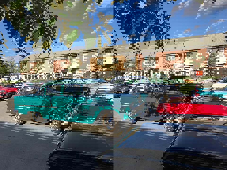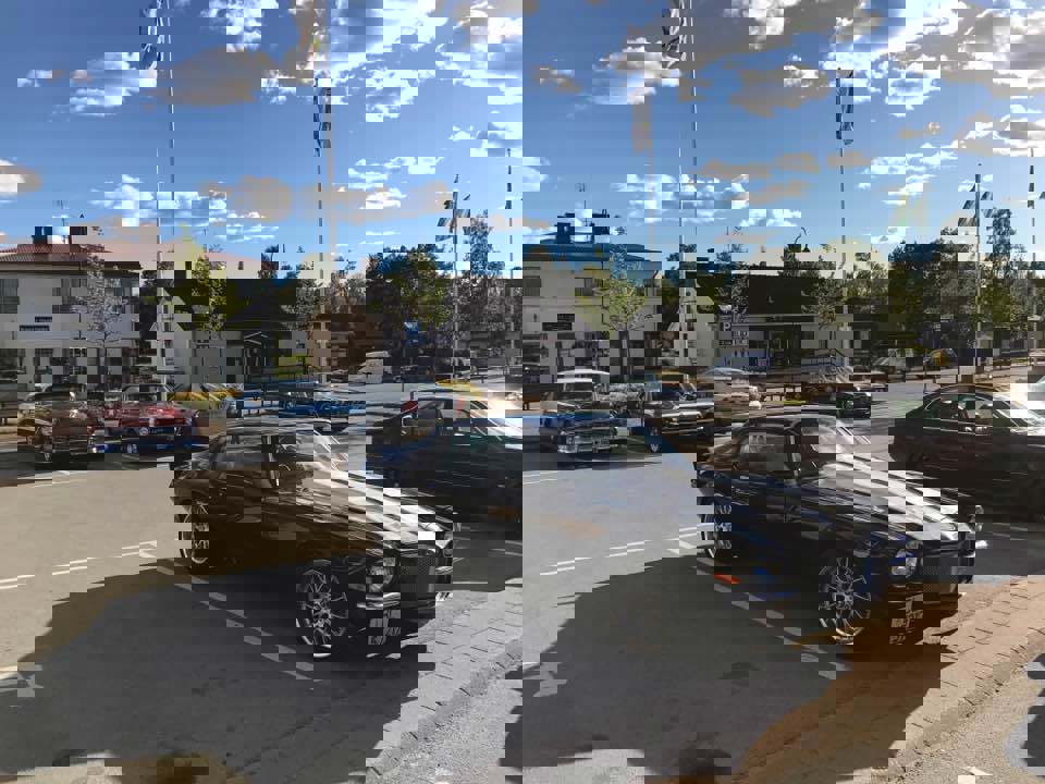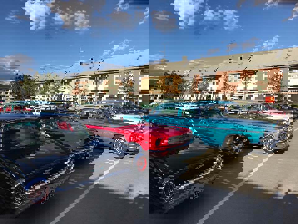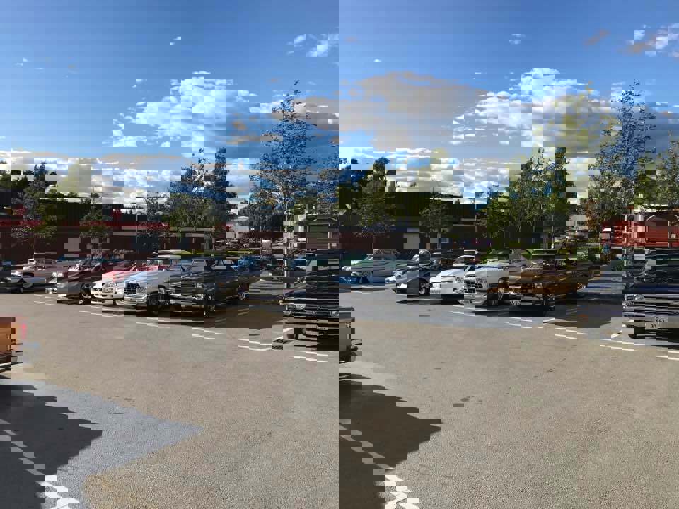 Cruising langs gamle E18 til Arams Pizzeria, Töcksfors. Ca 20 biler stilte opp. Foto: Arild Grønnevik Dato: 23. juni 2017
